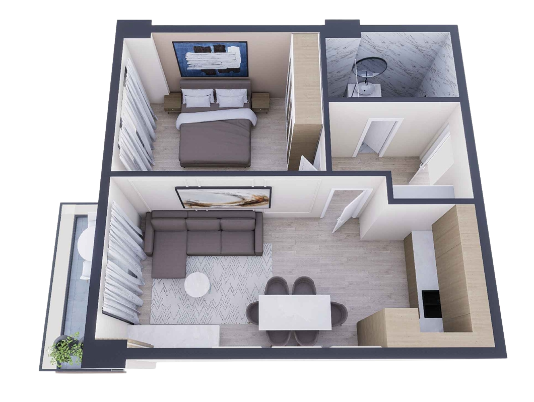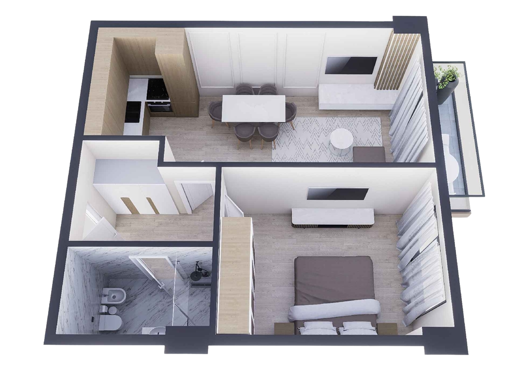Mieszkanie dwupokojowe na piętrach 1-3