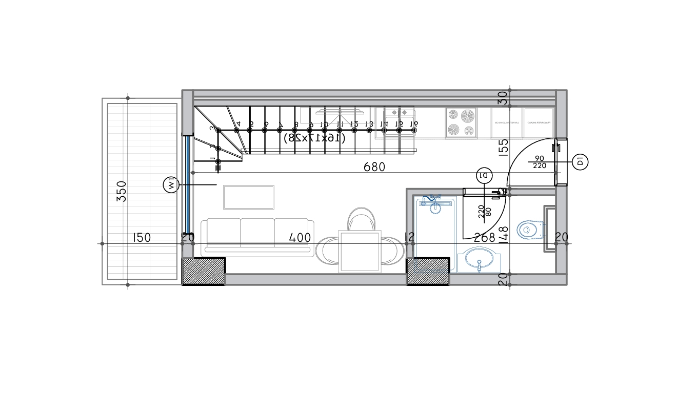 Powierzchnia całkowita 50,3m2, powierzchnia wewnętrzna 38,5m2 + balkon 5,3m2