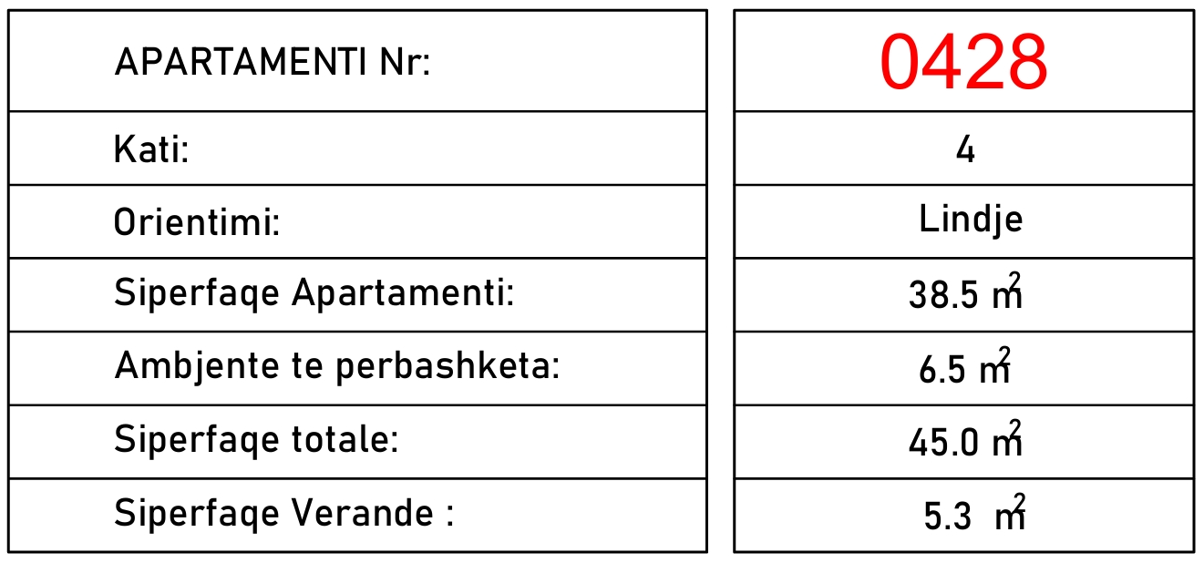 Powierzchnia całkowita 50,3m2, powierzchnia wewnętrzna 38,5m2 + balkon 5,3m2