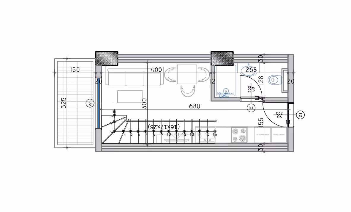 Powierzchnia całkowita 46,7m2, powierzchnia wewnętrzna 35,8m2 + balkon 4,9m2