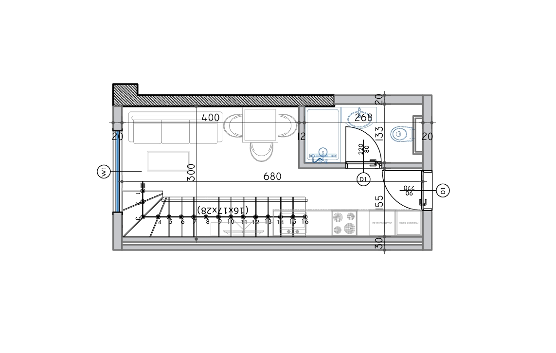 Powierzchnia całkowita 41,8m2, powierzchnia wewnętrzna 35,8m2