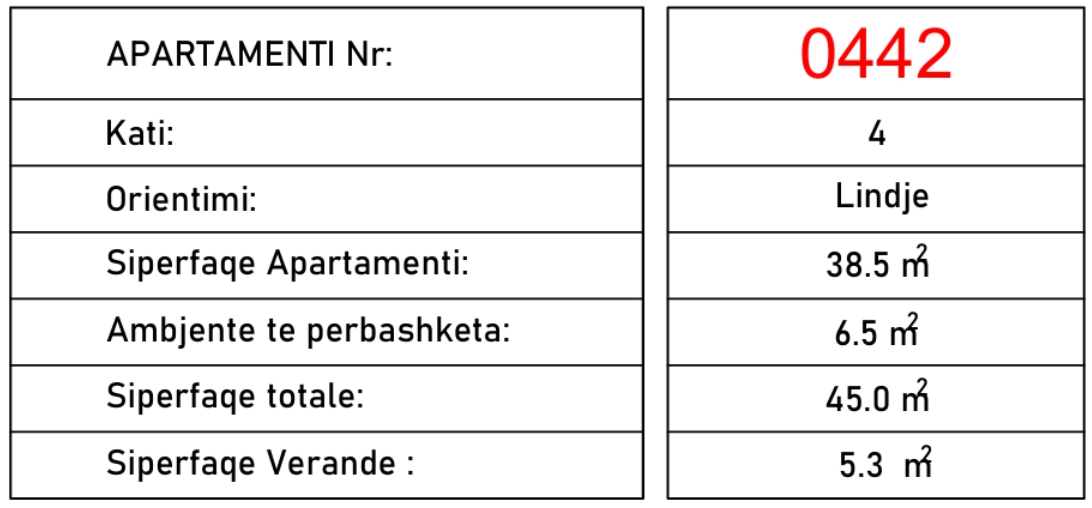 Powierzchnia całkowita 50,3m2, powierzchnia wewnętrzna 38,5m2 + balkon 5,3m2