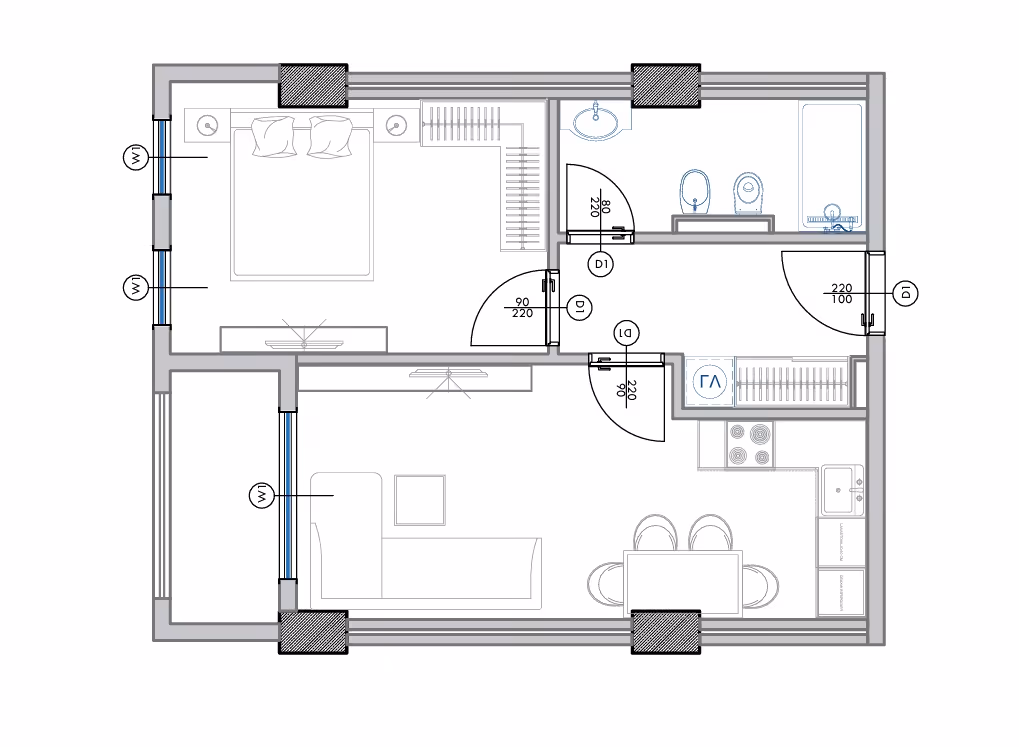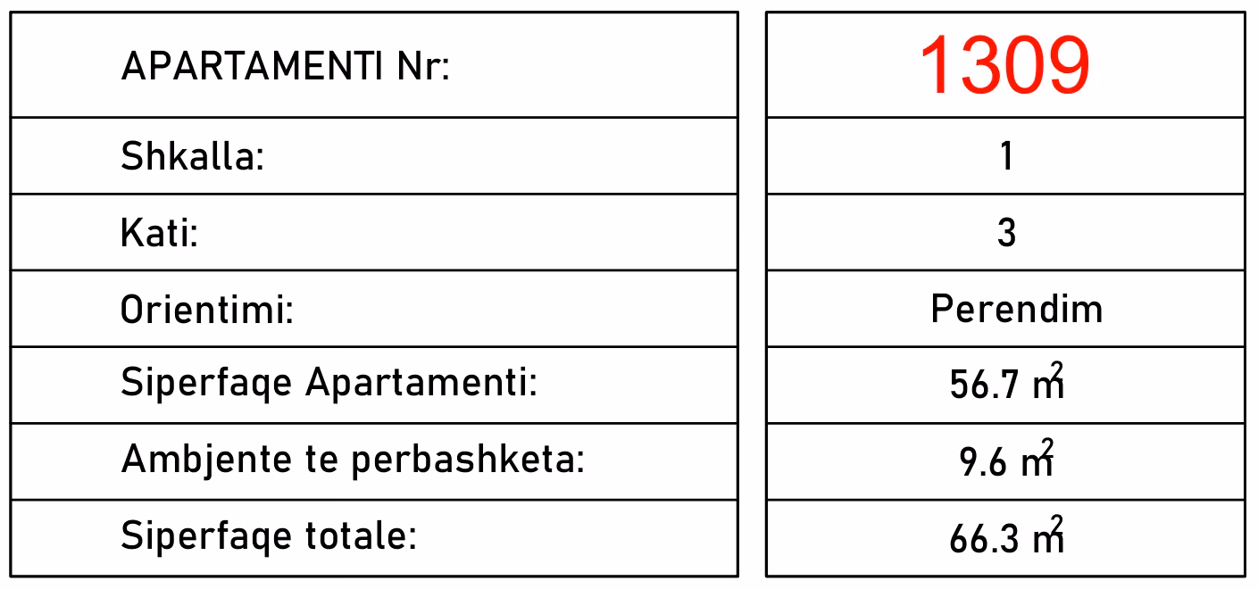 Powierzchnia całkowita 66,4m2, powierzchnia wewnętrzna 56,7m2