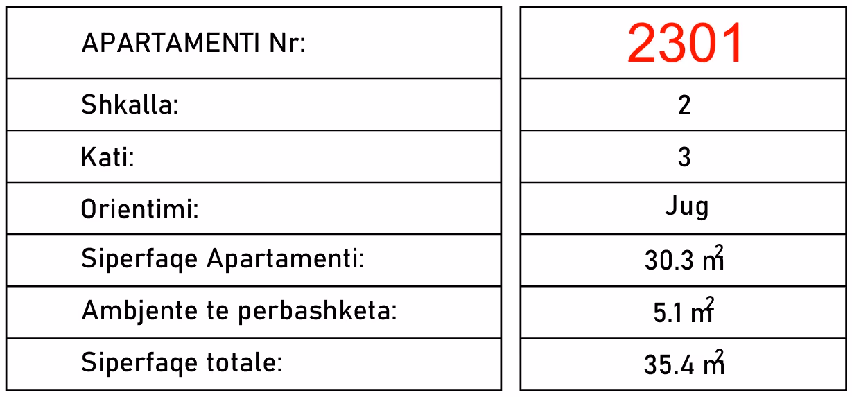 Powierzchnia całkowita 35,4m2, powierzchnia wewnętrzna 30,3m2