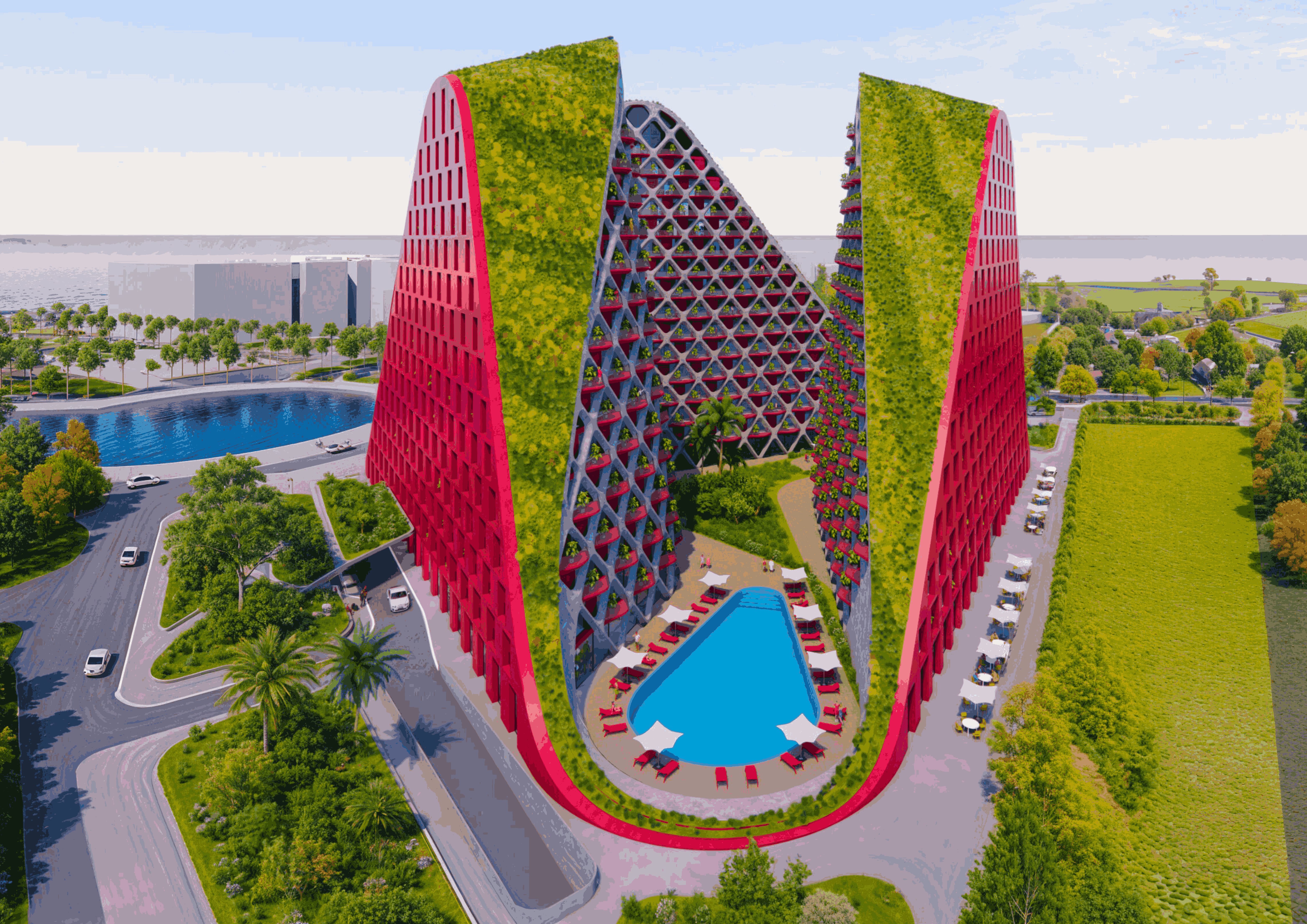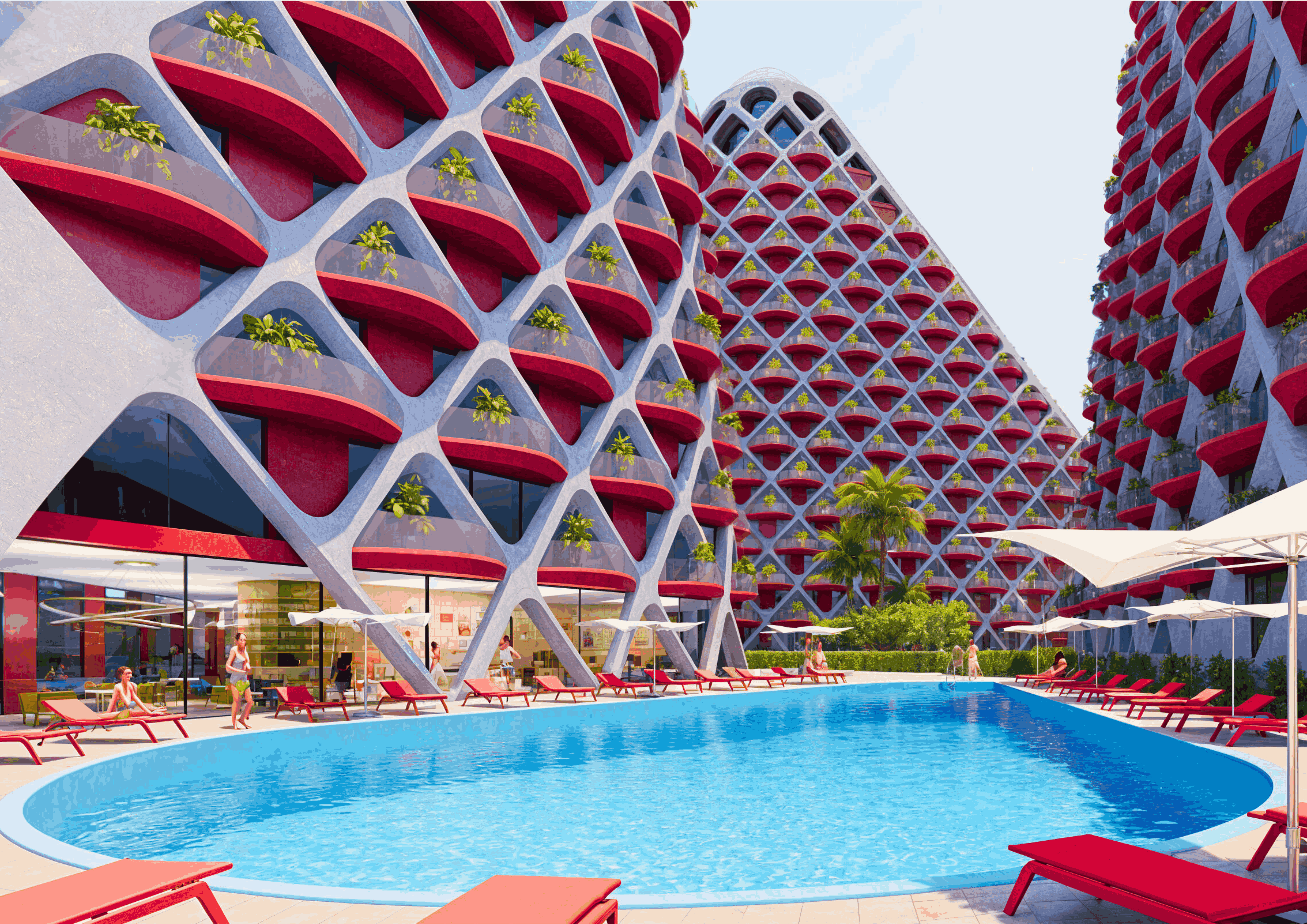 Narea to nowoczesna inwestycja mieszkaniowo-hotelowa,która harmonijnie łączy współczesną architekturę z nadmorskim krajobrazemQerret. Projekt kładzie nacisk na styl życia związany z przestrzenią zewnętrznądzięki przestronnym tarasom, zielonym elewacjom oraz zagospodarowanym balkonom,które łączą mieszkańców z naturą i naturalnym światłem.