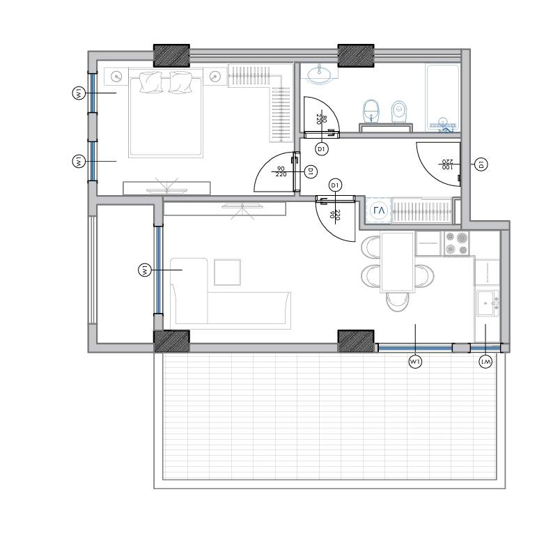 Powierzchnia całkowita 96,3m2, powierzchnia wewnętrzna 71,5m2 + balkon 24,8m2