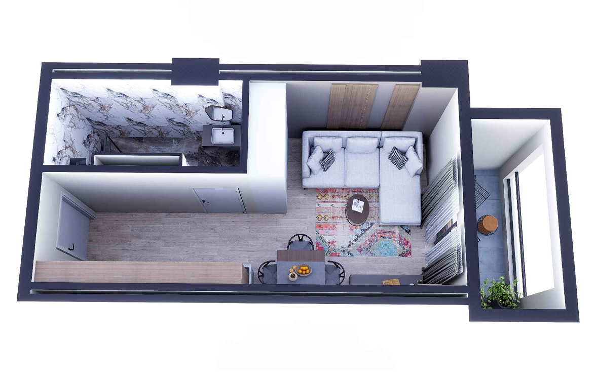 Powierzchnia całkowita 37,2m2, powierzchnia wewnętrzna 31,8m2
