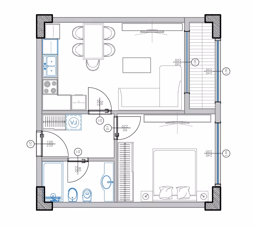 Powierzchnia całkowita 59.9m2, powierzchnia wewnętrzna 51.3m2