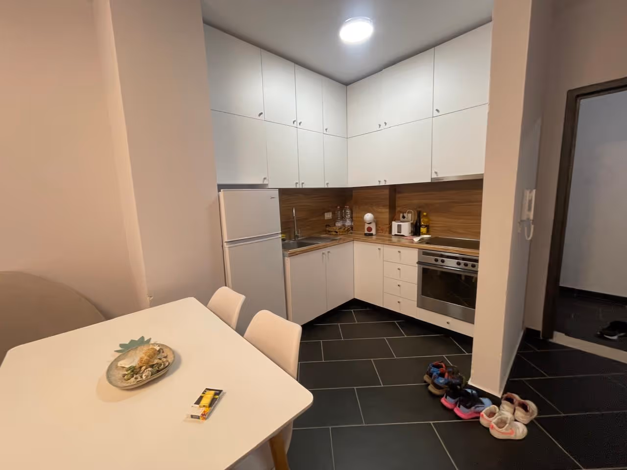 Bliskość morza (200 metrów) podnosi atrakcyjność oferty, a położony nieopodal dworzec autobusowy Durres-Plepa zapewnia komunikację nie tylko w okolicach Durres, ale w całej Albanii. Dodatkowym atutem mieszkania jest częściowy widok na morze.