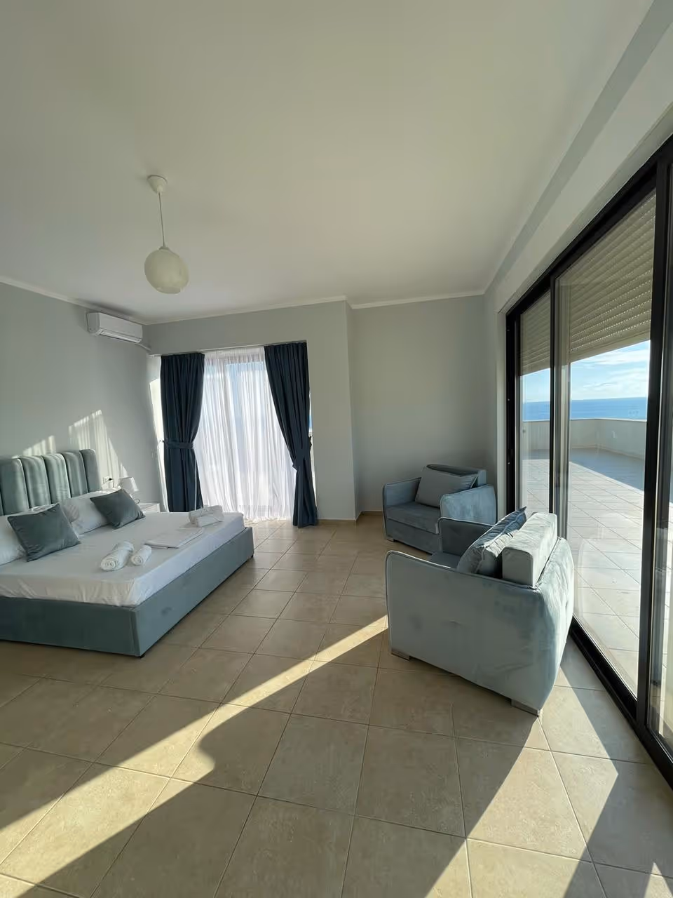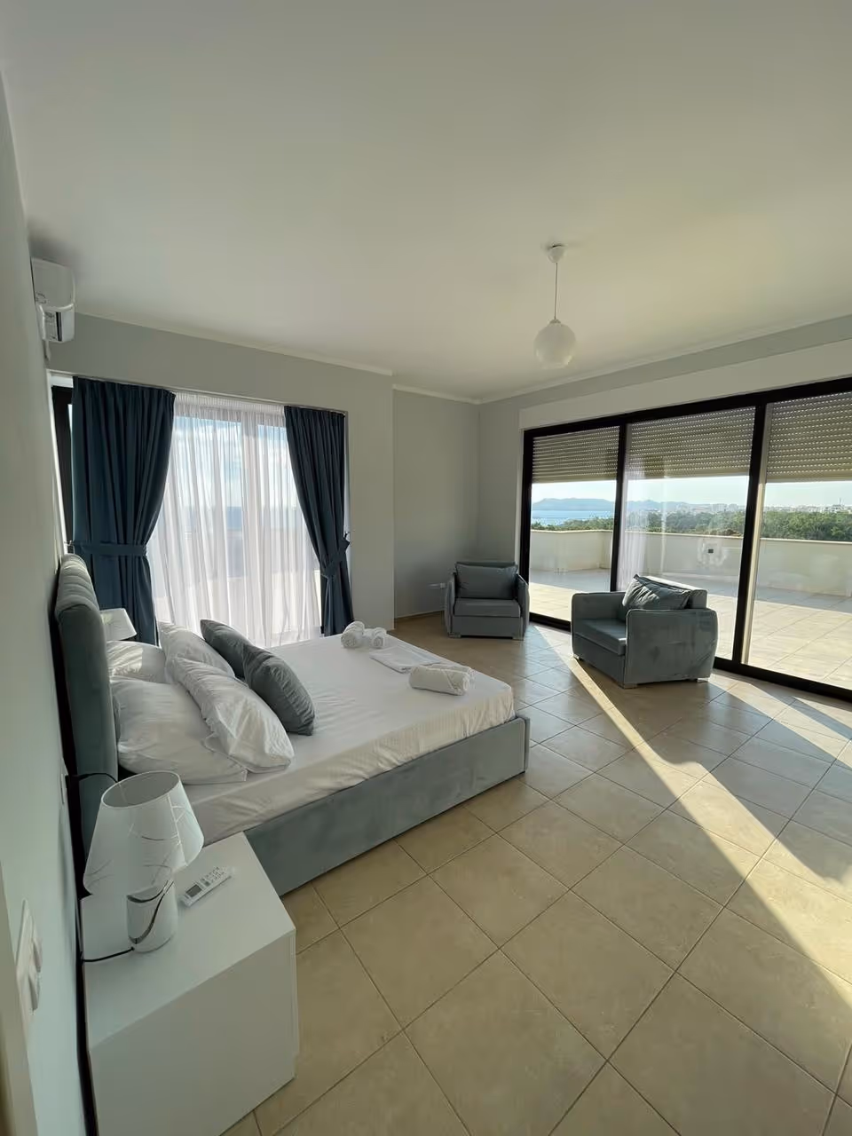 Lokal znajduje się na ostatnim piętrze budynku z windą, składa się z wykończonych w wysokim standardzie, salonu z kuchnią i jadalnią, dwóch sypialni, dwóch łazienek. Spokojna okolica, blisko dworca autobusowego Durres Plepa.