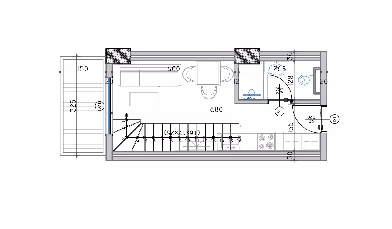 Powierzchnia całkowita 46,7m2, powierzchnia wewnętrzna 35,8m2 + balkon 4,9m2