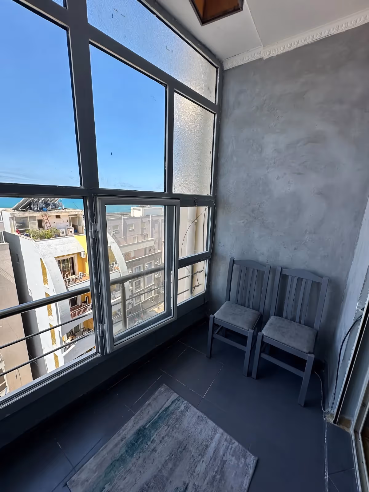 Mieszkanie ma powierzchnię wewnętrzną 30 m2 i powierzchnię całkowitą 35 m2, zorganizowaną w salon z kuchnią, toaletę oraz zamknięty przeszklony balkon z widokiem na morze, w nowym budynku z windą.