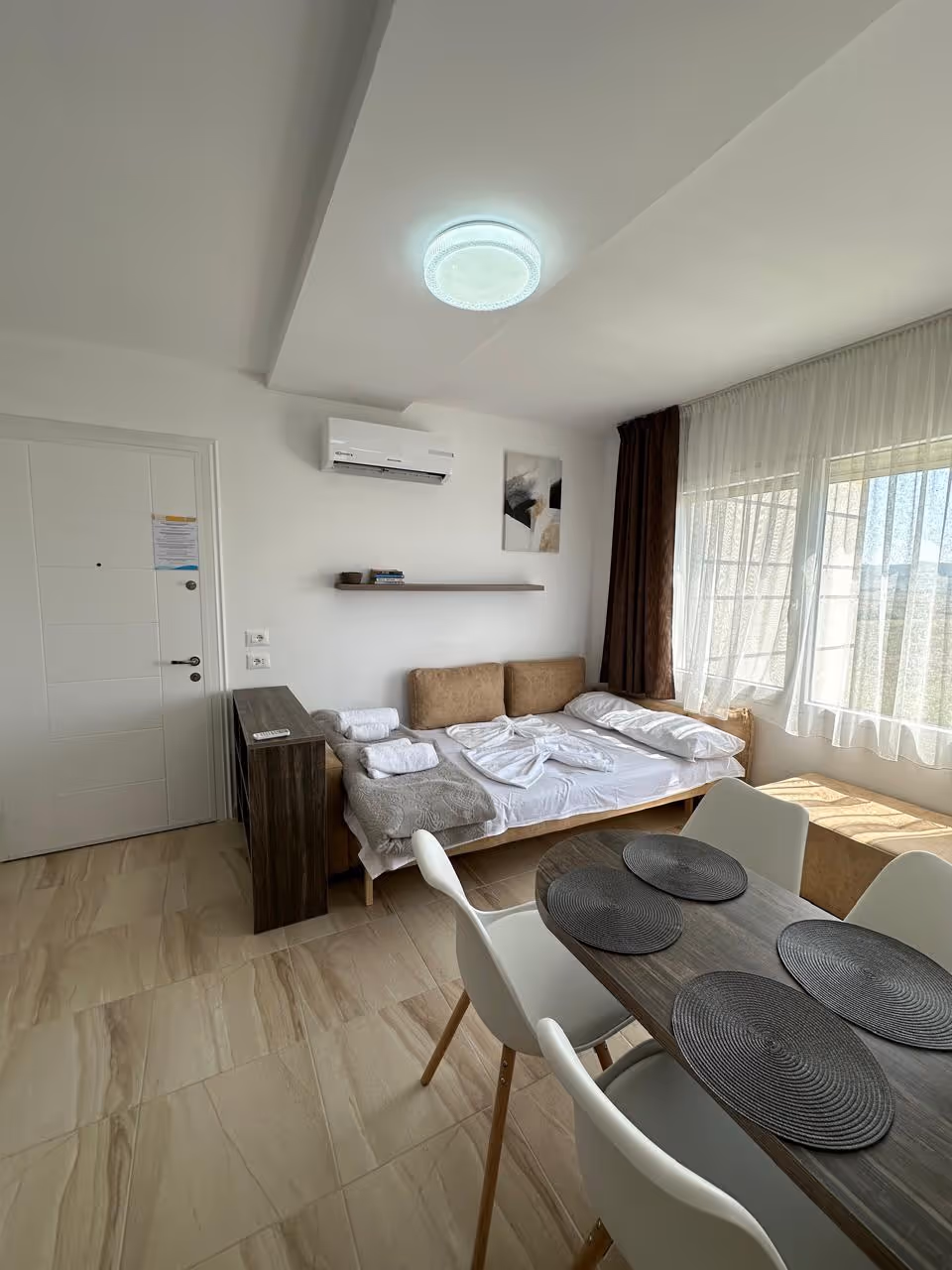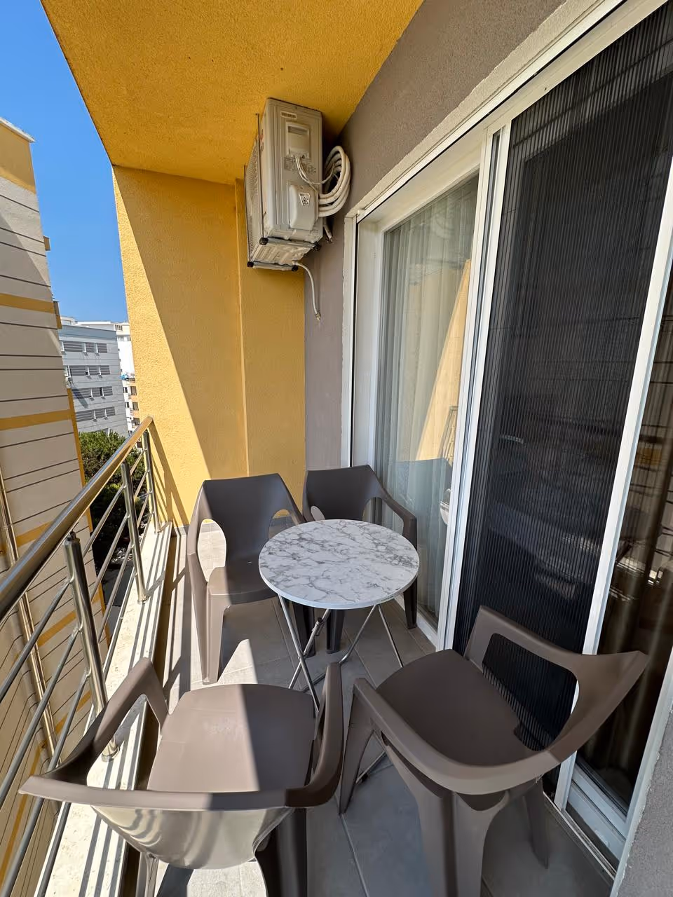 Apartament znajduje się na piątym piętrze budynku z windą. Odległość do plaży 150m. Okolica to w większości nowe budynki, i zbudowane kilka lat temu popularne hotele.